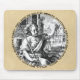 Justice holds the balanced scales of fairness. The quote in Latin: Dedita Iustitiae mens, et sibi conscia recti, nulla, deo fati tela regente, timet - "Devoted to the mind of Justice, and with a sense of right, he fears not, the god who governs the weapons of fate." From a drawing entitled "Justitia" (1600) by Crispin van de Passe.