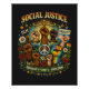 Raised fists of many identities surround the scales of justice, expressing a powerful call for equality, unity, and collective freedom.
