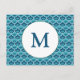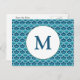 This monogrammed postcard features back text that is easy to customize for any a save the date announcement or any purpose and on the front there is a classic scallop design enhanced by small folk art inspired floral elements in wonderful sea colours of teal, blue and green. All colours, including the background, may be edited to any hue for a truly unique look.