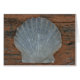 Grey scallop shell on weathered wood background