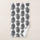 Towel set in a block print pattern, based on a scallop shell, in black on a white background