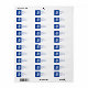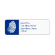 Labels in a block print pattern, based on a scallop shell, in white on a cobalt / navy blue background