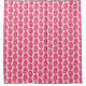 Shower curtain in a block print pattern, based on a scallop shell, in deep fuchsia pink on a pastel pink background