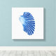 Wrapped canvas of a vintage scallop shell illustration, digitally coloured and enhanced, in deep indigo blue on a white background