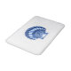 Digitally enhanced, mixed media vintage illustration of a scallop shell - dark navy / indigo blue on a white background bath mat