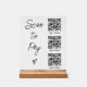 The ultimate convenience in modern transactions. This innovative sign empowers customers with three customizable QR codes, allowing you to seamlessly tailor payment options to your business needs. Customers can scan the code that suits them best, initiating secure and swift payments. Elevate your customer experience and streamline payments with personalized QR codes, putting the power of choice in your customers' hands.