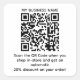 Use Zazzle's FREE QR Scanning Code tool to generate a qr code for your business. Use the stickers to promote your products. Add your business name and edit the text to suit your needs. This can be used to let customers know about a discount offer, to direct them to your social media, Instagram account, or to ask them to leave a Google Review. Edit accordingly.