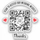 Custom Wedding website QR code sticker in black and white with curved text and two Red hearts. Cute black and white wedding QR code sticker.