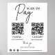 In a modern minimalist style, a simple custom white business scan to pay with QR code pedestal sign. The adaptable template is readily customizable with QR codes, custom text, payment icons, and social media icons.