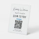 Chic custom pedestal tabletop sign for your business with a Venmo code for customers to scan for mobile payments and your name or brand showcased in a stylish signature script. Upload your QR code and add your contact information in clean simple lettering.
