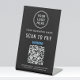Simple modern black table top pedestal sign for your business with a Venmo QR code for customers to scan for payments. Add your logo, QR code, and business name, phone number and street address in simple white typography.
