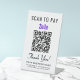 Simple modern table top pedestal sign for your business with a Zelle QR code for customers to scan for payments. Add your QR code, business name, phone number and street address in simple typography.