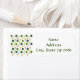 These return address labels have a Scandinavian repeating design of a forest in brown and shades of green and yellow stars.