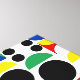 Seamless Repeat Geometric Scandinavian Nordic bauhaus Style Mid century Red, black, yellow, blue and green circles and semi circle shapes Decorative Modern Pattern Design on white background