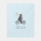 Scandinavian Bear on Bike Minimalist Blue Fleece Blanket