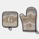 Scandinavian Brown Grey Marble Initial Monogram Oven Mitt & Pot Holder Set
