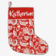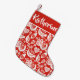 NewParkLane - Christmas Stockings, with a traditional intricate Scandinavian folk art Christmas Pattern of flowers, hearts, Christmas ornaments and birds in red and white, and a text template for your name, for a personalized design.