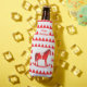 This awesome Christmas bottle cooler features a digital art image of a cute Scandinavian style rocking horse. The horse is red with a dark red mane, tail and hooves. The friendly horse is smiling. It has a white saddle and reins with pretty red Scandi folk style patterns on the saddle including the sun, moon and stars and hearts and flowers. The base of the rocking horse is red and is covered in pretty white leaves. The design was inspired by the Swedish Dala horse. There is custom text so you can personalize this design with a name or message of your choice.