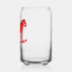 This awesome Christmas can glass features a digital art image of a cute Scandinavian style rocking horse. The horse is red with a dark red mane, tail and hooves. The friendly horse is smiling. It has a white saddle and reins with pretty red Scandi folk style patterns on the saddle including the sun, moon and stars and hearts and flowers. The base of the rocking horse is red and is covered in pretty white leaves. The design was inspired by the Swedish Dala horse. There is custom text so you can personalize this design with your own message.