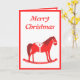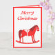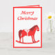 Cette magnifique carte de Noël présente une image art numérique d'un mignon cheval à bascule de style scandinave. Le cheval est rouge avec une crinière rouge foncé, la queue et les sabots. Le cheval sympathique sourit. Il a une selle blanche et des rois avec de jolis motifs de style Scandi rouge sur la selle, y compris le soleil, la lune et les étoiles, les coeurs et les fleurs. La base du cheval rocking est rouge et est couverte de feuilles blancs. Le design a été inspiré par le cheval suédois Dala. Il y a du texte personnalisé à l'avant et à l'intérieur qui vous permet de personnaliser entièrement le design.