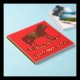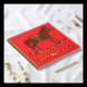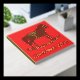 This beautiful foil Christmas Guestbook features a digital art image of a cute Scandinavian style rocking horse. The horse is red with a dark red mane, tail and hooves. The friendly horse is smiling. It has a white saddle and reins with pretty red Scandi folk style patterns on the saddle including the sun, moon and stars and hearts and flowers. The base of the rocking horse is red and is covered in pretty white leaves. The design was inspired by the Swedish Dala horse. There is custom text on the front, in beautiful gold foil so you can personalize this design with your own message.