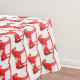 This awesome patterned Christmas tablecloth features a digital art image of a cute Scandinavian style rocking horse. The horse is red with a dark red mane, tail and hooves. The friendly horse is smiling. It has a white saddle and reins with pretty red Scandi folk style patterns on the saddle including the sun, moon and stars and hearts and flowers. The base of the rocking horse is red and is covered in pretty white leaves. The design was inspired by the Swedish Dala horse.