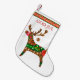 Folksy reindeer stocking in classic Scandinavian Christmas style. A decorative reindeer, folk braid and a carved reindeer horn button. God jul! Illustrated by Anni Arts in the style of traditional Scandi folk paintings. Also see the coordinating Holiday stockings with traditional julbock, folksy elk/moose and Dala folk toy horse illustrations, as well as other Scandinavian Christmas products and cards. You can customize the message.