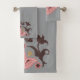 Scandinavian Floral Pattern Grey Pink Bath Towel Set