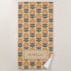 Make a stylish splash at the beach or pool with this personalized retro floral beach towel. Featuring a vibrant flower pattern in mustard yellow, pink, and green, this towel adds a playful touch to any sunny day. Customize it with your name for a unique and personal accessory that stands out. Ideal for summer outings or as a thoughtful gift, this towel is both functional and fashionable, perfect for vintage design lovers.