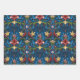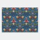 Scandinavian Folk Art Blue Red Floral Pattern Wrapping Paper Sheet