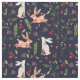 Scandinavian Folk Art bunnies and flowers on a dark blue background.