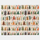 Folk art quilt illustration with Christmas trees, shapes in bold colours. Scandinavian style