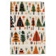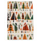 Folk art quilt illustration with Christmas trees, shapes in bold colours. Scandinavian style