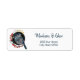 This watercolor return address label features a cute, Scandinavian folk art style illustration of a beautiful bird with leaves and berries in blue, red, white, and gold. Personalized script text name in coordinating blue complements the design. You'll love adding a unique, artistic touch to all your fall, winter, and Christmas mail with this colorful, botanical return address label.