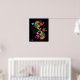 This poster is an illustration is in the style of Rosemaling, a folk art that originated in Norway. As a graphic designer with Scandinavian heritage, I have always loved Rosemaling designs, the patterns of arcing paint strokes, flowers, and homey images in bright colors. Illustrated with jewel-deep tones on a black background, this poster will be a striking addition to your decor.