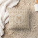 Scandinavian Folk Floral Monogram Pattern throw pillow. Personal throw pillow with floral folk pattern in Scandinavian style for kids room. Beige tulips.