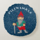 A whimsical pillow featuring cute little Nordic gnome on the front with curved white text for you to customize with your name. The reverse side has an all over pattern with gnomes. This cheerful Scandinavian design is done in navy, green, red and , grey and is sure to brighten up your cozy home.