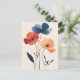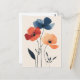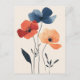 A poppy-red bloom contrasts electric blue leaves in a bold yet refined floral arrangement on soft beige.