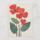 A fire-red floral centerpiece with mint green framing leaves adds a fresh pop against a neutral background.