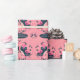Scandinavian PINK Blue Folk Art Birds Named Wrapping Paper