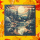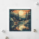 Scandinavian retro art of a cabin at a lake in a mountain forest, to give your home a Nordic feel