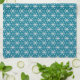Festive kitchen towels with Scandinavian / Norwegian blue and white snowflake knit sweater pattern.