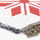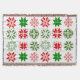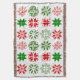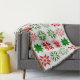 This throw blanket has a Christmas design of different snowflakes in red and green in rows.