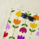Scandinavian style flower illustrations in a colourful repeat surface pattern design on a cream colour background.