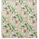 Scandinavian folk art style nature illustrations (woodland; fox, leaves, trees, flowers, mountains and birds) in a surface pattern design on a light cream colour background.