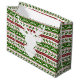 A Scandinavian Large Gift Bag Of White Reindeers In Red, Green And White Striped Colourful Christmas Holly