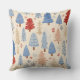 A cozy Scandinavian forest pattern throw pillow featuring hand-drawn trees in soft red, blue, and beige tones. This charming winter woodland design blends autumn warmth and Christmas cheer, perfect for seasonal projects and festive themes. Ideal for those who love modern rustic, minimalist, and cozy holiday styles.