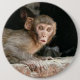 Button of a scared monkey with big eyes looking like it is frightened by something or like it suddenly remembers something.