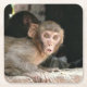 Coaster with a scared monkey with big eyes looking like it is frightened by something or like it suddenly remembers something.