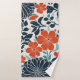 Brilliant scarlet and black stylized flowers with dusty teal accent foliage on a linen-coloured background creates a beautiful and stylish set of bath towels.